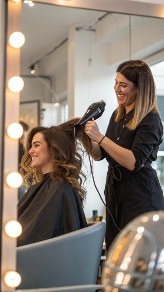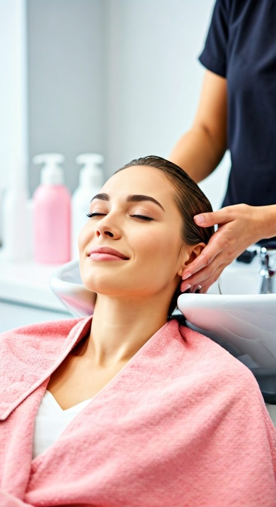 Je haar wordt gewassen met milde, krulvriendelijke producten zonder sulfaten of siliconen.
