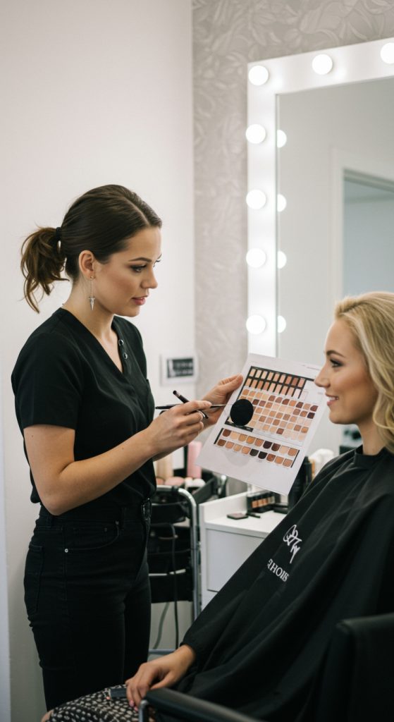 Onze visagist brengt de make-up stap voor stap aan, afgestemd op jouw gezichtsvorm, huidtint en stijl.